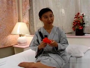 Asian chick tames hard male rods. Cute asian is having fun taking on several male rods